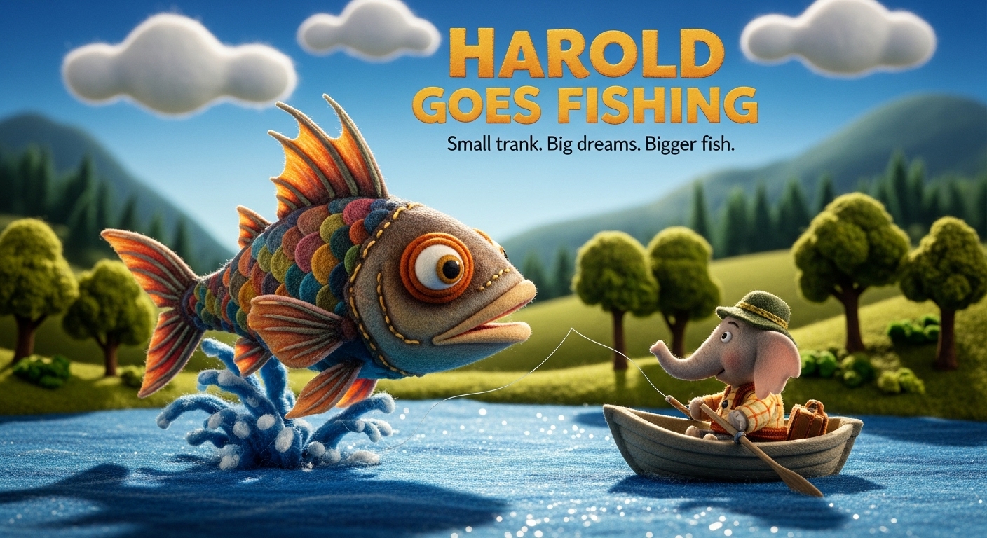 Tagline: "Small trunk. Big dreams. Bigger fish." World: A miniature felt universe where everything is soft, handmade, and slightly wobbly. Like a living children's craft book.